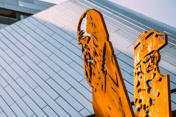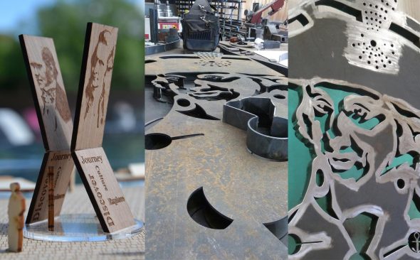 evolution and natural selection.  The public art sculpture thus portrays these two outlooks of Battle and Discovery, and inspired by Love and Hate knuckle tatoo’s, celebrates the dichotomy.