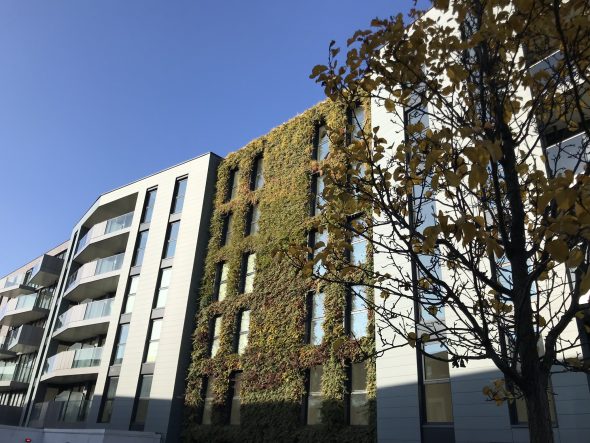 The streetscapes within the regeneration consist of parking and pavements, with tree planting throughout.  Green wall features along two of The Courtyard’s facades create a beautiful softening and focus.