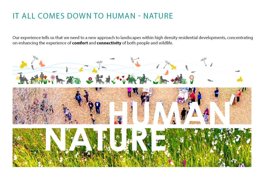 We know that high density developments, without access to green outdoor space can result in the mental and physical well-being of residents being adversely affected, we also know that natures well-being suffers. Ultimately the relationship that humans have with nature begins to break down.